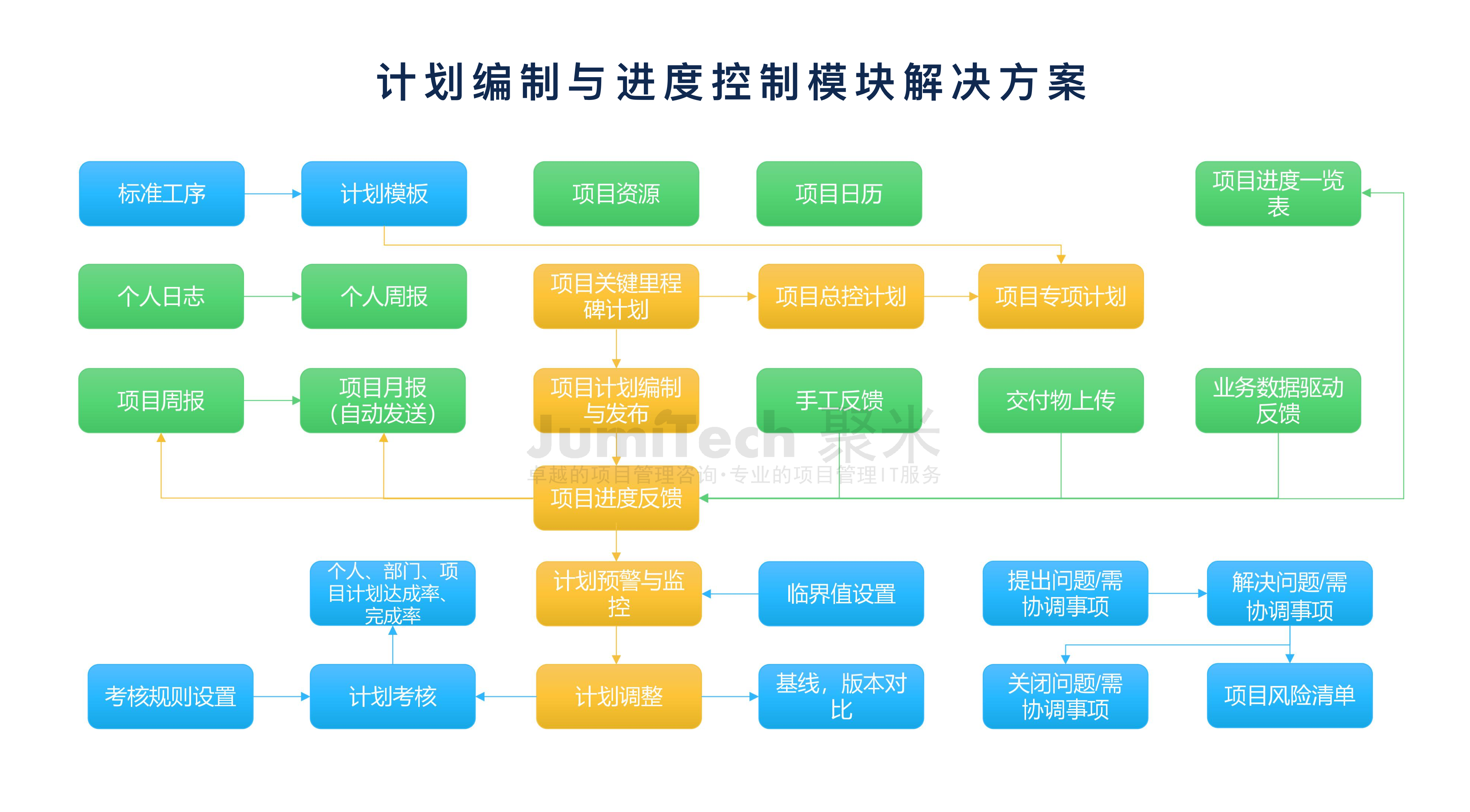 - 梳理不同項目類(lèi)型的標準任務(wù)、標準計劃模板,使得項目的執行過(guò)程按階段、任務(wù)標準化和規范化;