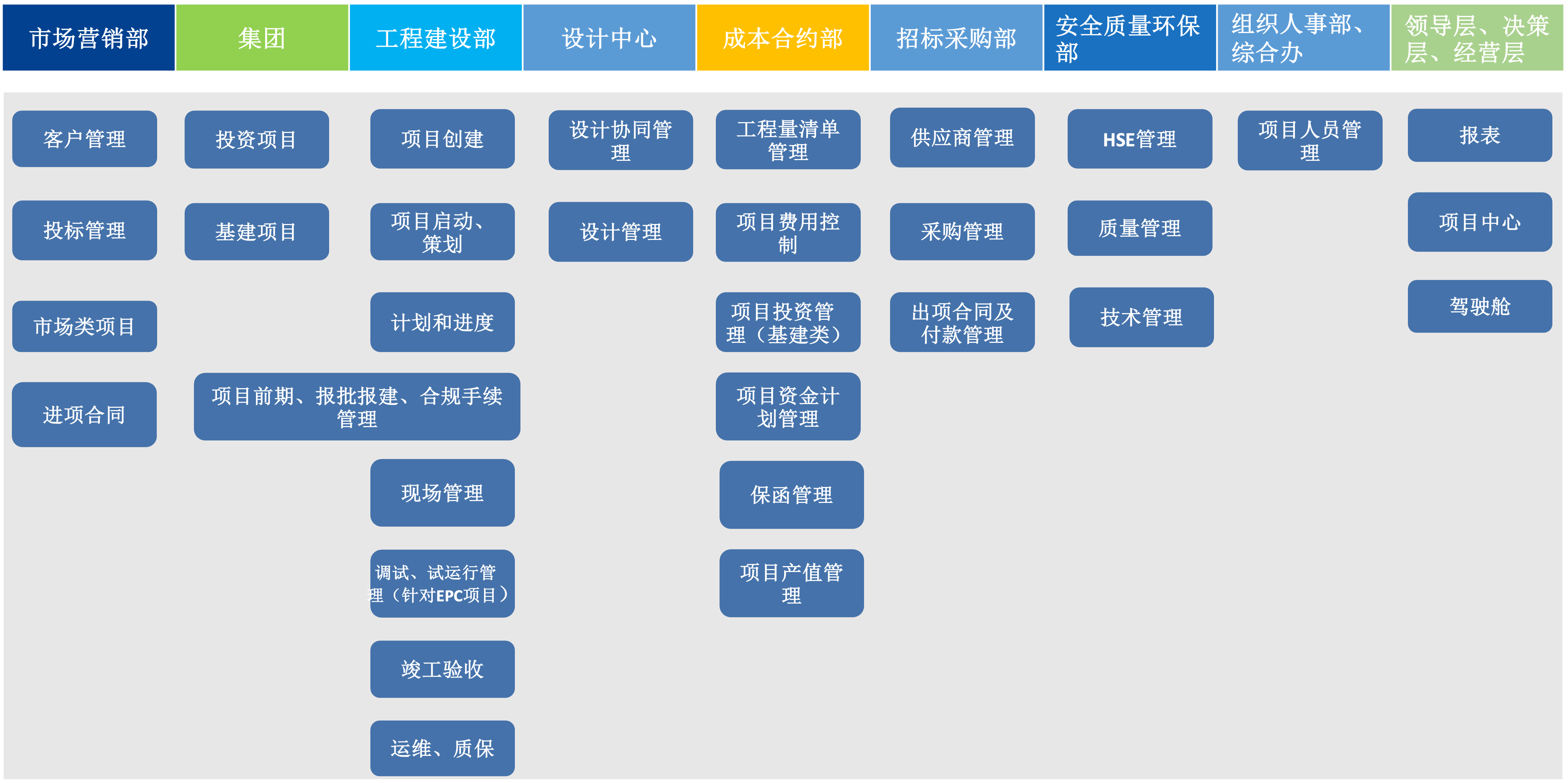 系統(tǒng)將工程從項目前期、設(shè)計、采購、施工、竣工到后評估、運維,進行全過程、全方位的協(xié)同項目管理,將項目分包商、供應(yīng)商集中在一個系統(tǒng)平臺上,實時對項目的計劃和進度、預(yù)算和成本、質(zhì)量和安全、圖紙文檔、設(shè)計、采購、施工、調(diào)試、驗收進行全方位全過程監(jiān)控預(yù)警和協(xié)同。
