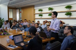 (圖片內(nèi)容:聚米科技項(xiàng)目經(jīng)理余筱才在做主題匯報(bào))